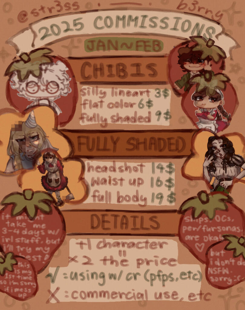 commissions will be starting from the day this is posted (jan 2nd) until the end of february.